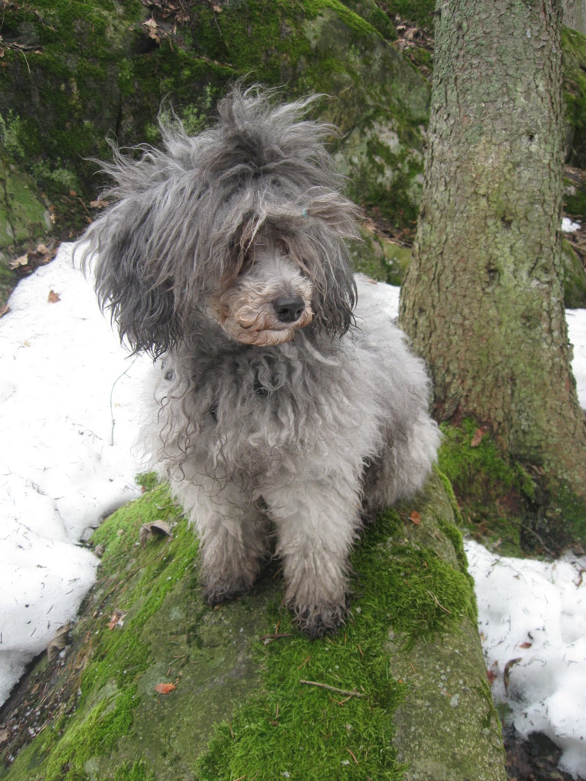 Nu nyss kom vi in från en härlig lång promenad i solen. I början blev det en del koppelträning, väldigt behövlig kan jagg tillägga! Det är inte helt lätt för en valp att förstå att man inte får gå på höger sida om matte. Men hon gör stora framsteg, nu snor hon sällan runt fötterna på mig när hon är kopplad! Eftersom vi gick längre än vanligt, fick hon åka famn endel, för att hon ju som bekant är valp och ännu inte ska röra sig för mycket. Hon höll dock inte med! Det är ju inget kul att gå och hänga på mattes armar när Zoë får springa runt och göra spännande grejer på marken!